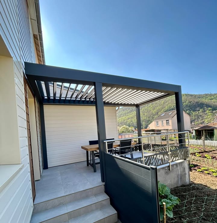 Sur mesure et personnalisable, la pergola permet de protéger sa terrasse de la pluie et de contrôler la chaleur tout en restant élégant et simple.