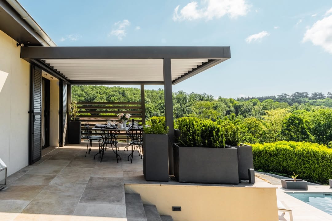 Sur mesure et personnalisable, la pergola permet de protéger sa terrasse de la pluie et de contrôler la chaleur tout en restant élégant et simple.